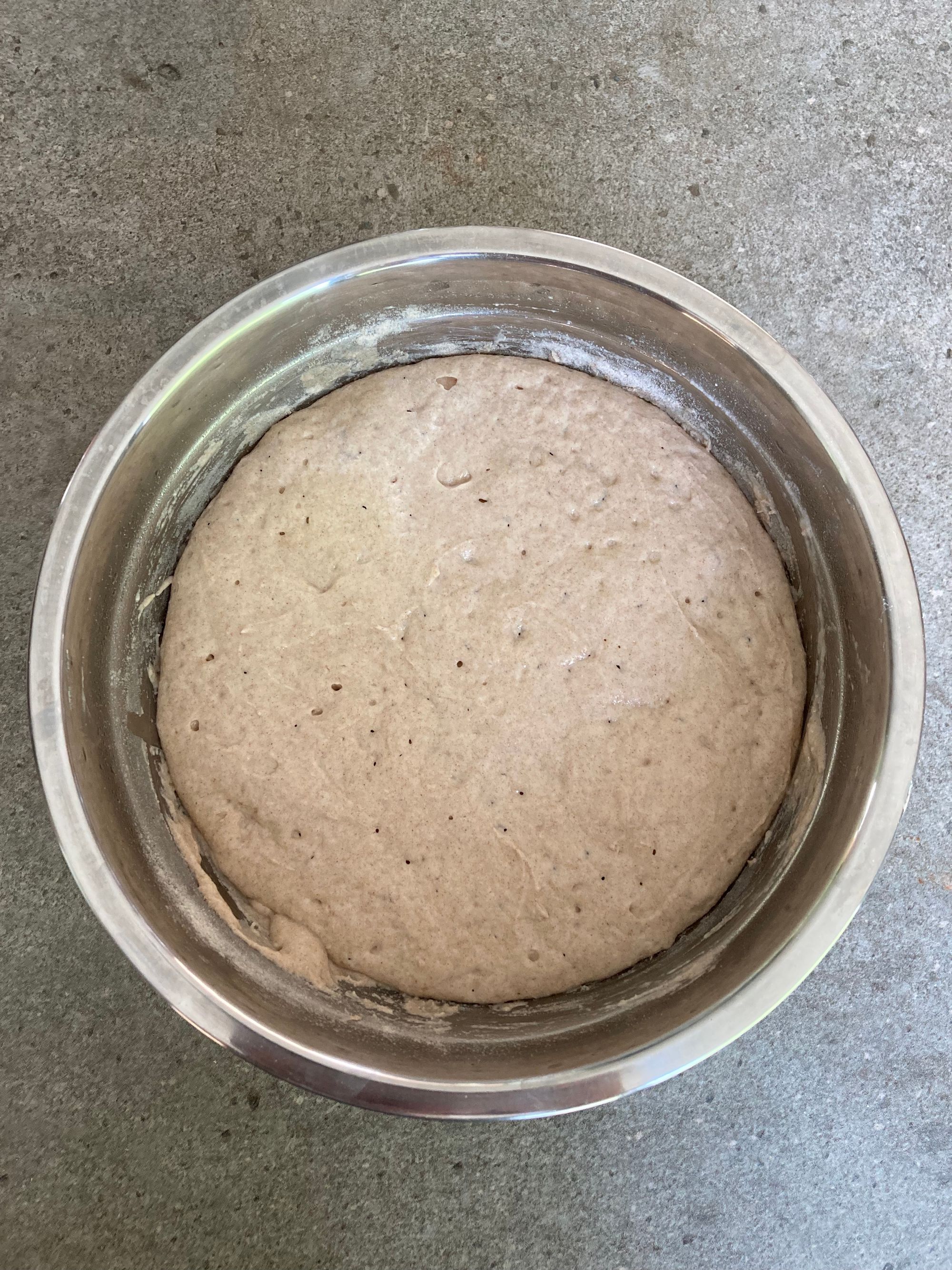 Am nächsten Tag die Zutaten der zweiten Stufe verrühren und weitere 4 Stunden bei Zimmertemperatur gehen lassen.