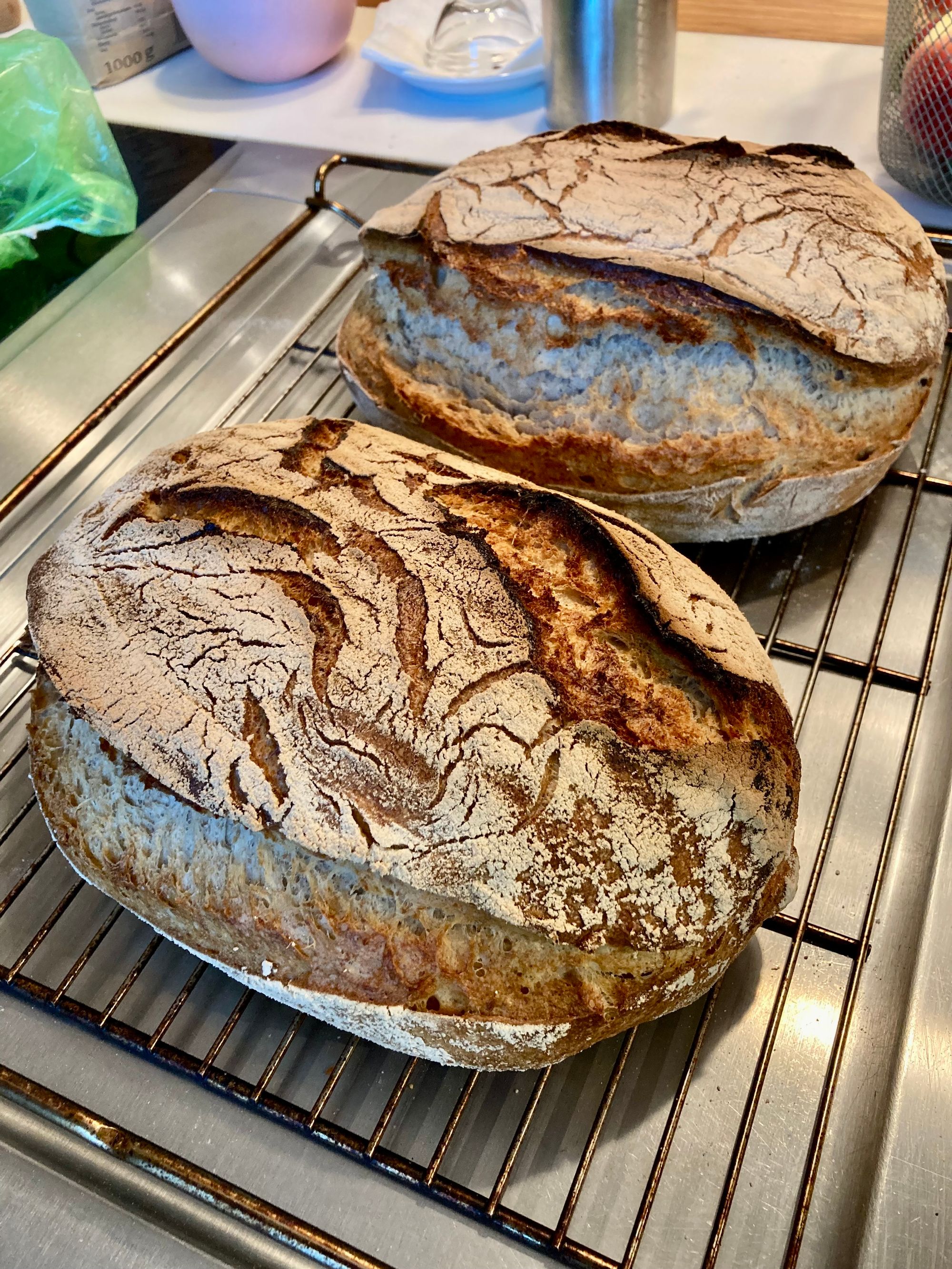 Eines der einfachsten Brote sind Weizenmischbrot. Im Grunde genommen setze ich immer einen Roggenvollkorn Sauerteig an und backe dann den Rest mit Weizenmehl. Durch den hohen Weizenanteil, entwickelt das Brot ein gutes Klebergerüst und lässt sich wunderbar formen.